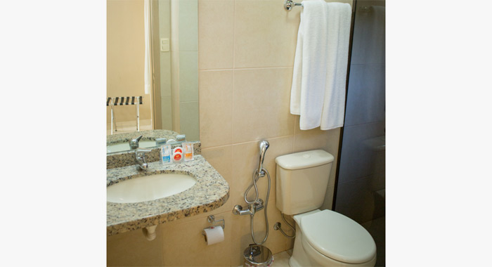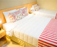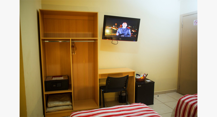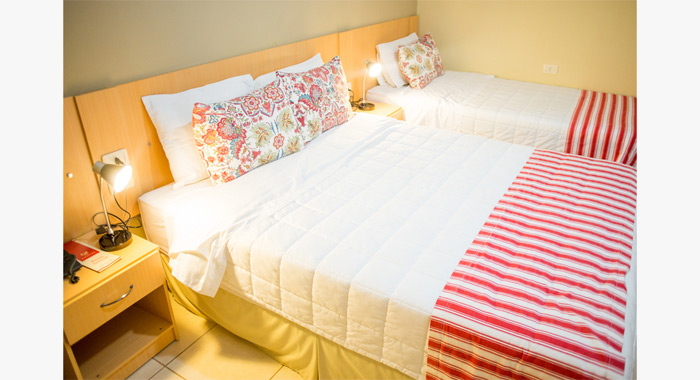 Habitación con una cama Queen Size y una cama Twin Size con TV LCD 32” con acceso a 75 canales por cable, Aire Acondicionado frio/calor, Teléfono DDN-DDI, Cofre de Seguridad, Secador de pelo.