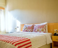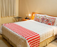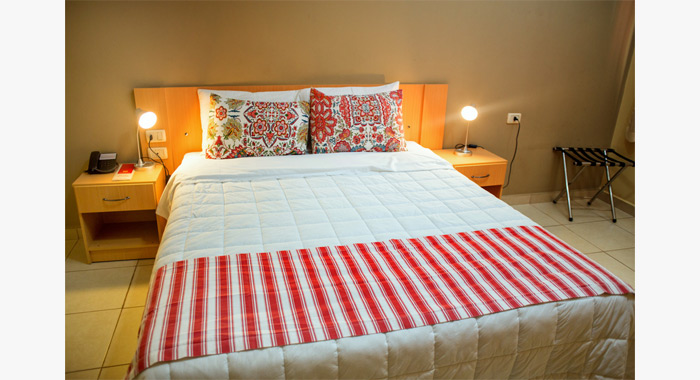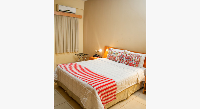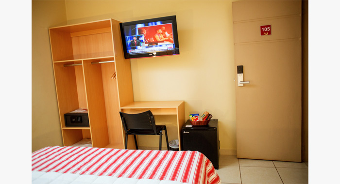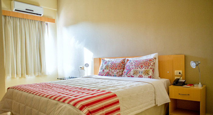 Habitación con cama Queen Size con TV LCD 32” con acceso a 75 canales por cable, Aire Acondicionado frio/calor, Teléfono DDN-DDI, Cofre de Seguridad, Secador de pelo.
